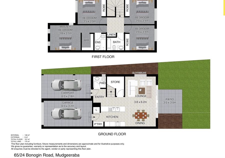 Four Comfortable, upstairs Bedrooms: Offering privacy and tranquillity. The master bedroom includes a spacious walk-in robe and private ensuite, while the remaining three bedrooms feature built-in robes.
